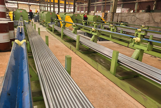 公司年產(chǎn)萬噸“不銹鋼無縫換熱管”;目前擁有φ20高精度高速軋機6臺,φ60高速軋機5臺;冷拔機 8臺(4臺一拉三冷拔機);全套渦流超聲一體探傷設備;水壓機等。